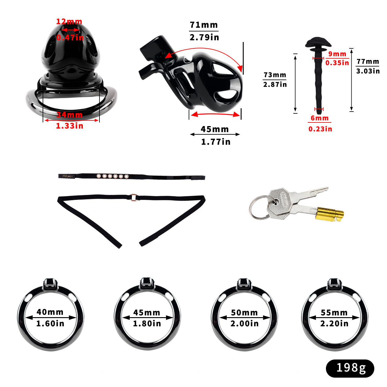 The ABS Resin Chastity Lock offers a discreet and comfortable experience for couples, BDSM enthusiasts, and those practicing abstinence. Crafted from lightweight aluminum alloy and ABS resin, it features a hollow, breathable design for hygiene and comfort. The lock comes in three sizes (Small, Medium, Large) to ensure a perfect fit for 98% of users, with four adjustable card rings (40mm, 45mm, 50mm, 55mm) for customization.