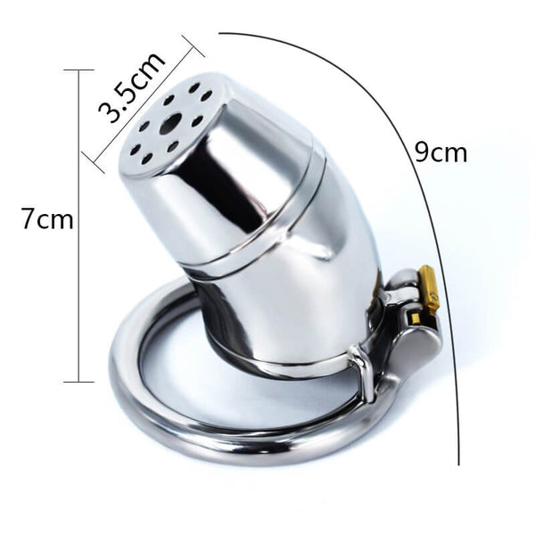 Die Gesamtlänge beträgt ca. 9 cm, die Länge des Käfigs beträgt 7 cm und der Innendurchmesser beträgt 3,5 cm