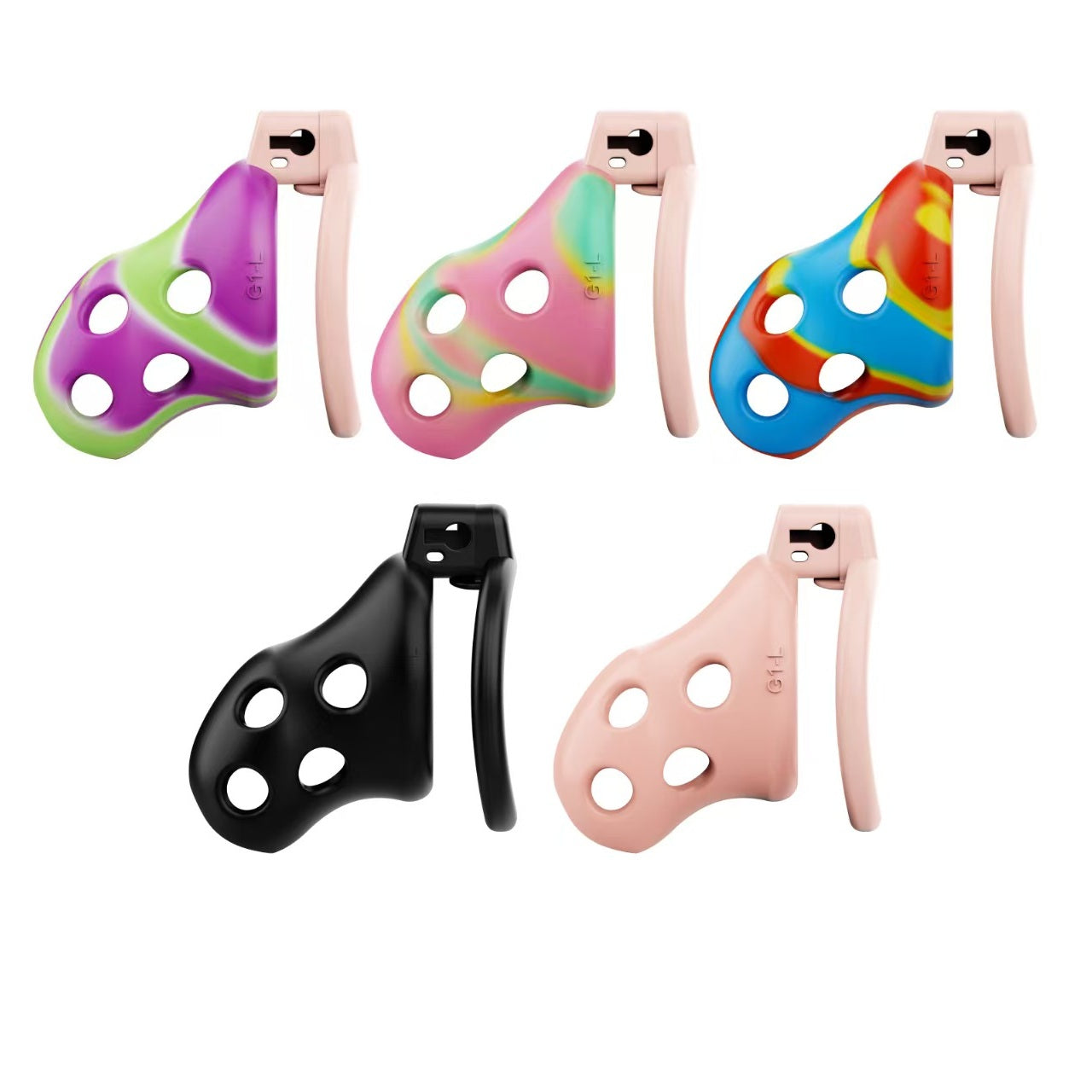 Our Breathable Soft Rubber Cock Cage provides optimum comfort and security. It is meticulously created from a high, skin-safe silicone rubber and provides a particularly flexible and pleasant sensation against the skin, avoiding the discomfort caused by hard materials. The revolutionary perforated design allows for optimal ventilation, enhancing hygiene and long-term wearability by keeping the area cool and dry. Its lightweight design and ergonomic shape ensure a discreet, second-skin fit for everyday activities. For those looking for a comfortable, sanitary, and dependable introduction to chastity, this cage strikes the ideal blend of gentle security and breathable confinement.