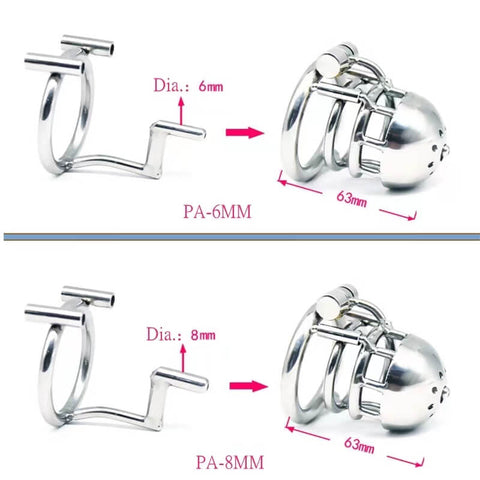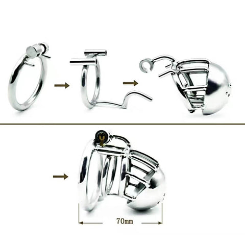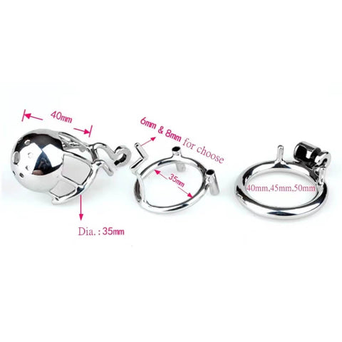 Include: 1 pcs Ring(3 sizes can be choose)、1 pcs Cage、 1 pcs PA bridge ring、1 pcs brass padlock with two keys;