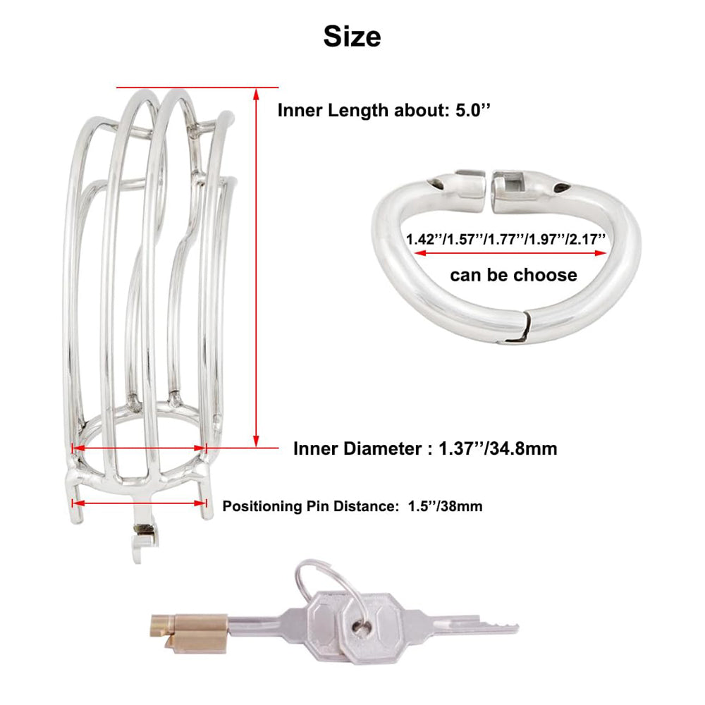 Engineered from body-safe stainless steel, the Steel Big Chastity Cage offers a secure and comfortable fit. Its key feature is a hinged base ring, simplifying the fitting process. You can personalise the fit with a choice of five ring sizes, ranging from 1.42" to 2.17" (36mm–55mm). The main cage provides an internal length of approximately 5 inches with a 1.37" diameter, ensuring a substantial and customisable experience for dedicated wearers seeking a robust and adjustable device.
