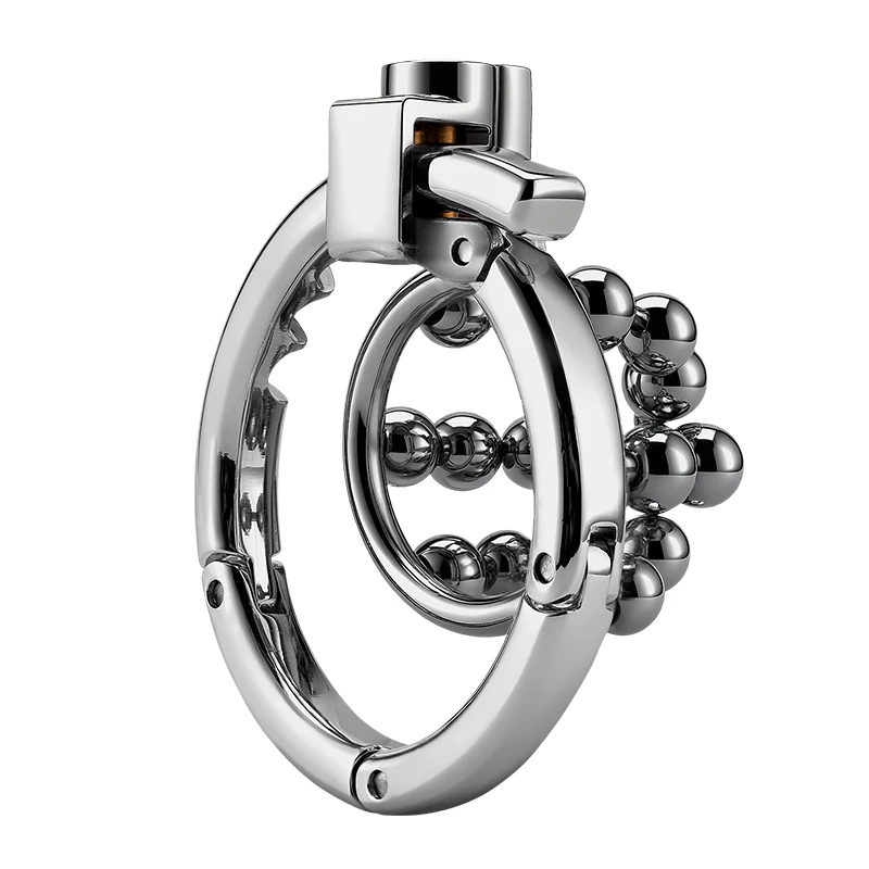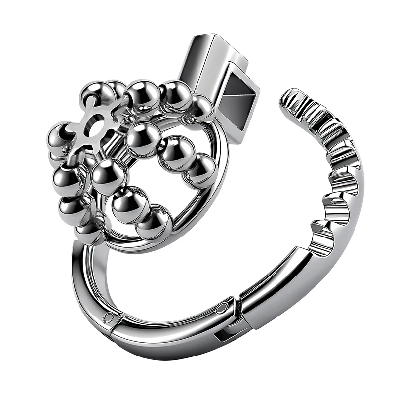 Our Steel Ball Metal Chastity Lock - Crafted from solid, polished steel for enduring strength and a premium feel, its defining feature is the fully adjustable base ring, seamlessly sizing from 38mm to 60mm for a perfect, comfortable fit. This innovative design eliminates guesswork, offering superior comfort and unwavering reliability for long-term wear. Surrender to total control with this unyielding symbol of devotion.